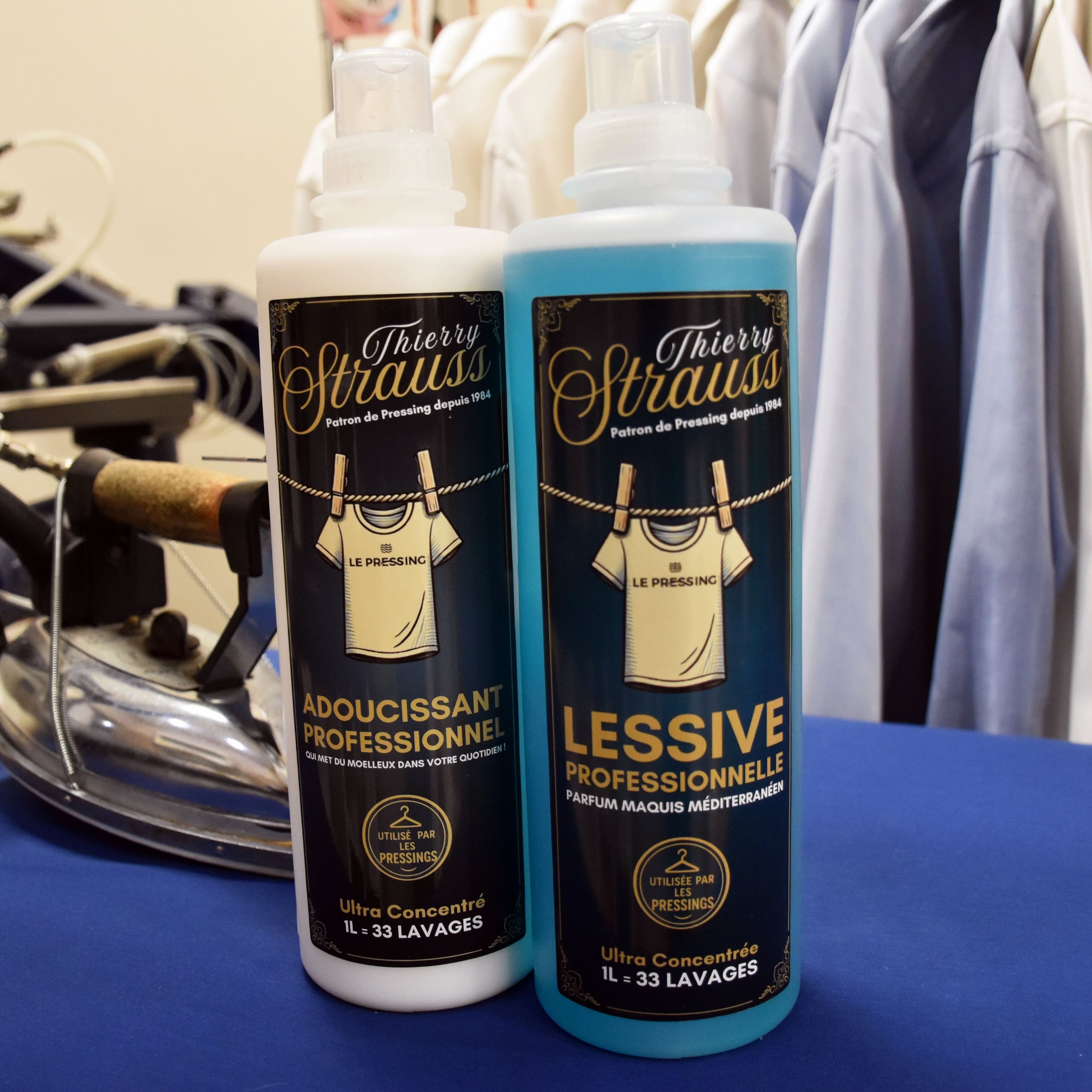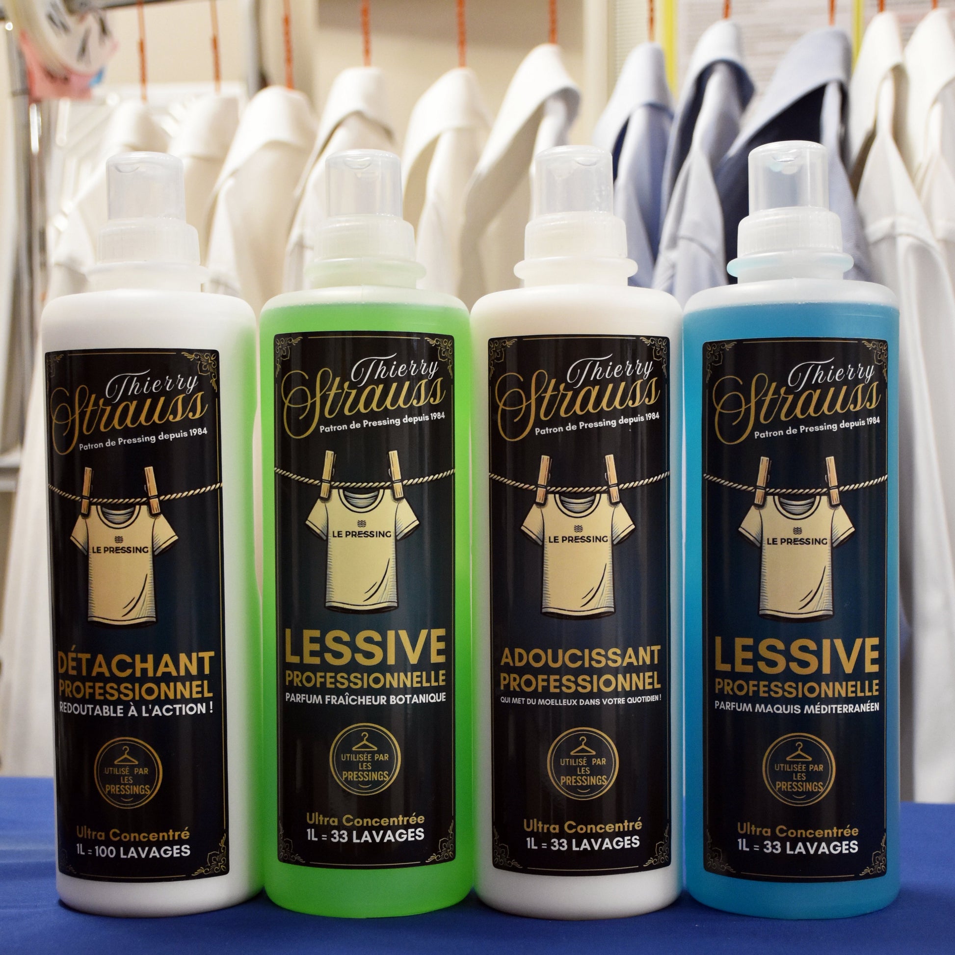 Découvrez notre gamme professionnelle : lessives, adoucissant et détachant — l’efficacité du pressing, enfin à la maison.