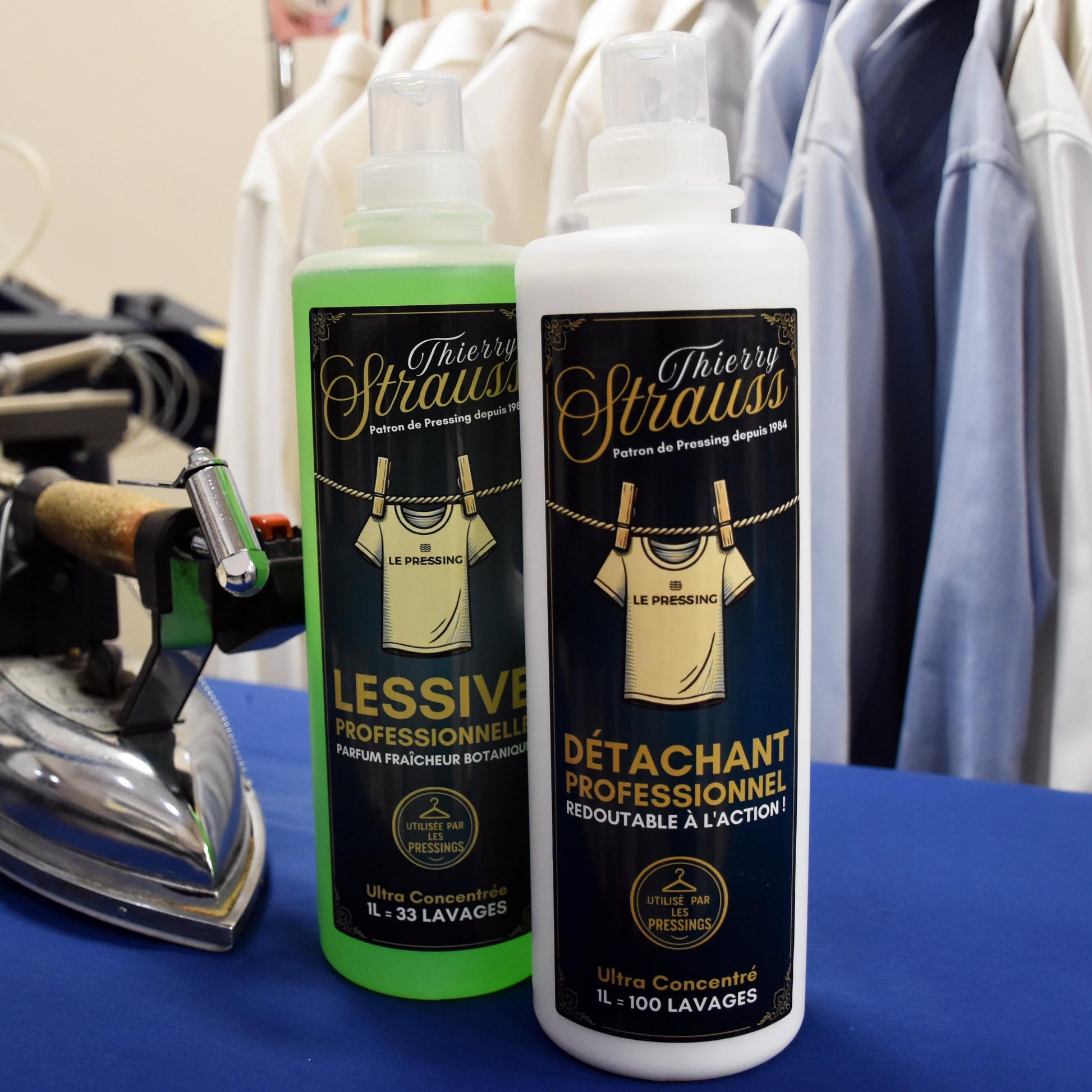 Lessive et détachant issus de nos pressings à Strasbourg : pensés pour traiter tous les jours les taches des clients, pas seulement celles de la maison.