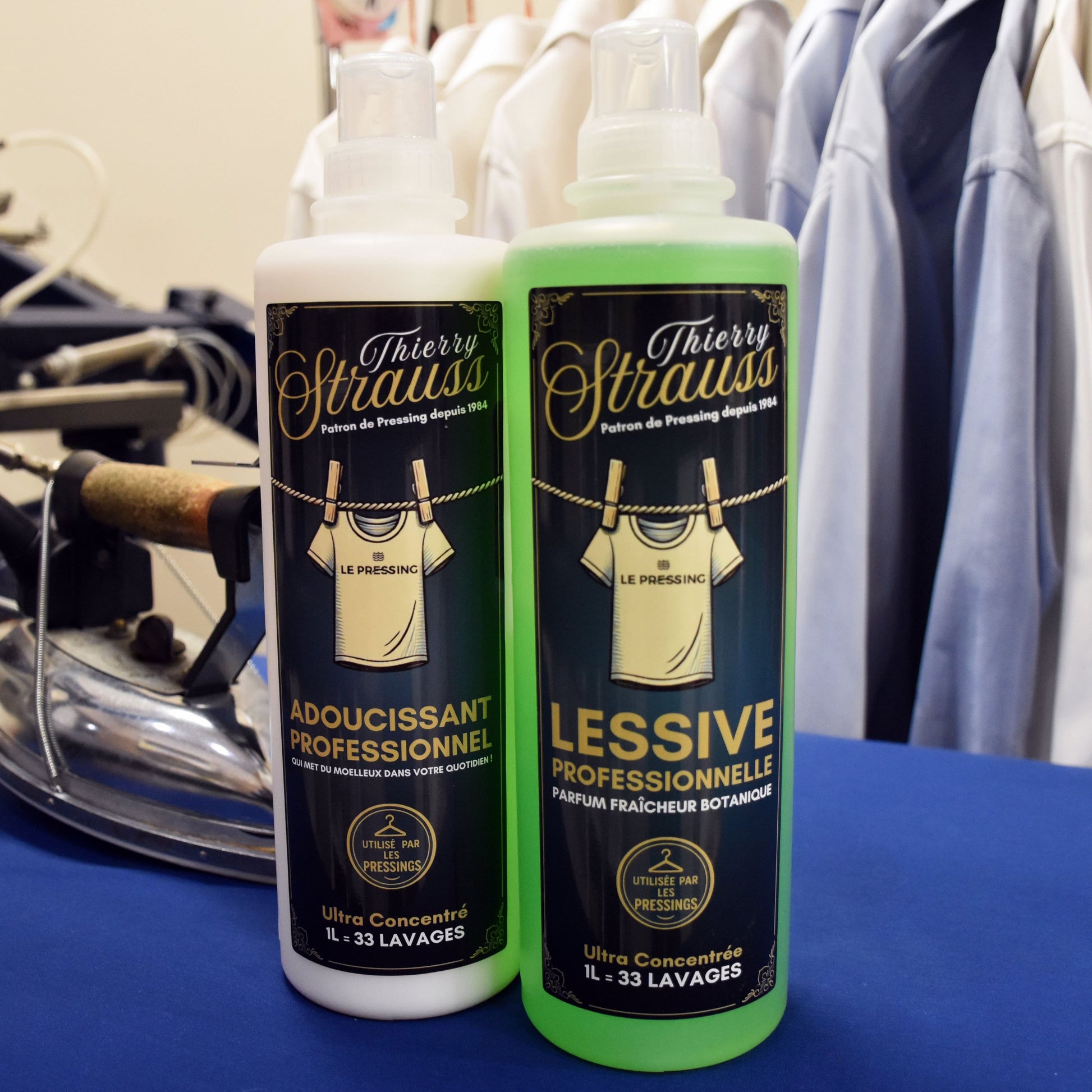 Lessive et adoucissant issus de nos pressings à Strasbourg : nettoyage en profondeur, couleurs ravivées, vraie odeur de propre durable.